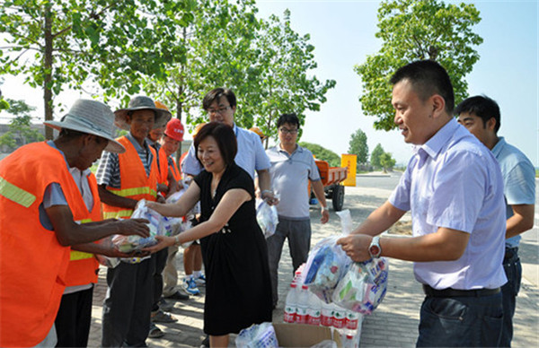 炎炎夏日,酷暑當(dāng)頭,持續(xù)高溫天氣給室外作業(yè)人員帶來了嚴(yán)峻考驗。8月2日上午,園區(qū)黨工委委員、管委會副主任、開發(fā)公司總裁丁琦帶隊慰問了高溫下堅守在一線的環(huán)衛(wèi)、物業(yè)保安、施工人員等,為他們送去了礦泉水、毛巾等防暑降溫用品。