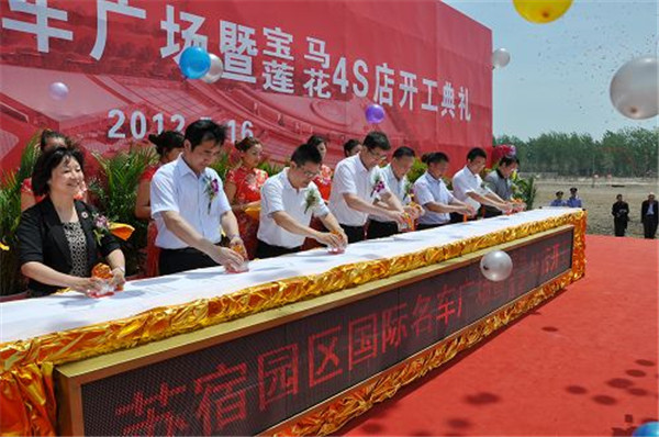 5月16日上午10時58分,蘇宿園區(qū)國際名車廣場暨寶馬、蓮花4S店開工典禮在蘇宿工業(yè)園區(qū)隆重舉行。