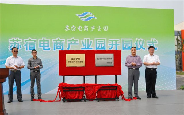 開(kāi)園儀式上,顧玉坤同蘇州歐富朗電子商務(wù)有限公司總經(jīng)理趙慧、團(tuán)市委書(shū)記陳偉、宿遷學(xué)院科技處處長(zhǎng)周德廉共同為“宿遷市青年創(chuàng)業(yè)孵化基地”、“ 宿遷學(xué)院學(xué)生實(shí)習(xí)實(shí)訓(xùn)基地”揭牌。