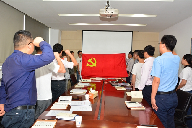 緊接著,開展“四重”活動(dòng)?;顒?dòng)前公司行政人事部專門從園區(qū)檔案室調(diào)取每一名黨員入黨志愿書,將內(nèi)容拍好發(fā)到每人,重溫入黨時(shí)的難忘經(jīng)歷。在劉建華書記的帶領(lǐng)下,右拳高擎,神情莊重,面對(duì)鮮紅的黨旗鄭重宣誓,抒發(fā)對(duì)黨的忠誠,踐行黨的宗旨,維護(hù)黨的形象和愛黨愛國情懷。