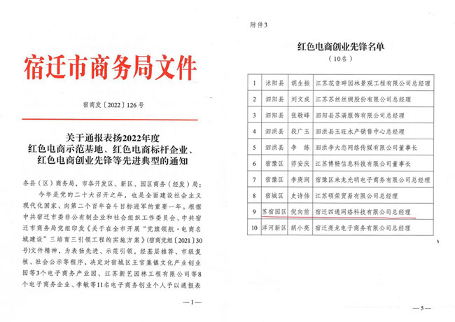 黨的二十大召開之年,市商務(wù)局為擦亮“電商名城”牌子,激發(fā)“電商名城”發(fā)展新動能,12月15日,組織紡織服裝產(chǎn)業(yè)鏈黨建工作暨“黨旗領(lǐng)航·電商名城建設(shè)”推進會。園區(qū)企業(yè)家四通科技董事長倪向前獲得“紅色電商創(chuàng)業(yè)先鋒”榮譽稱號。