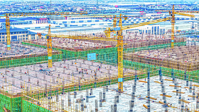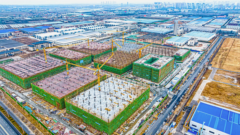 2023年12月26日,蘇宿工業(yè)園區(qū)智慧信息產(chǎn)業(yè)園項(xiàng)目施工現(xiàn)場,工作人員正在有序施工。