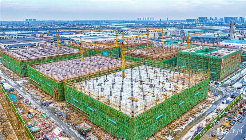 12月26日,蘇宿工業(yè)園區(qū)智慧信息產業(yè)園項目施工現(xiàn)場,建設人員正在有序施工。