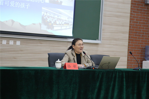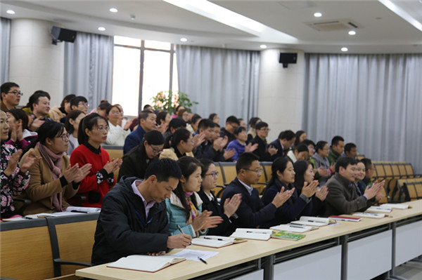 駱敏從“做教師的意義、如何成為學(xué)生心目中的好老師和如何成為大家心中的好老師”三個方面給老師們上了一堂別開生面的專業(yè)發(fā)展課。駱敏指出,教師應(yīng)該具有高尚奉獻(xiàn)、完善自我的意識,特別要從細(xì)節(jié)方面、從學(xué)生的角度思考,開啟通向優(yōu)秀教師的通道。駱敏認(rèn)為學(xué)生心目中的好老師應(yīng)該是一名演說家、幽默大師,具有獨特的教學(xué)藝術(shù),對孩子能夠真誠贊美、懂得尊重學(xué)生、真心關(guān)愛學(xué)生。作為好老師,應(yīng)該修德、修志、修學(xué)、修能、修性,有欣賞的眼光,感恩的心態(tài)。